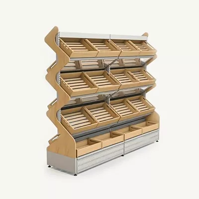 Modüler, her alana uyum sağlar. Ahşap, üç katlı reyon ürün çeşitliği sağlanmaktadır.